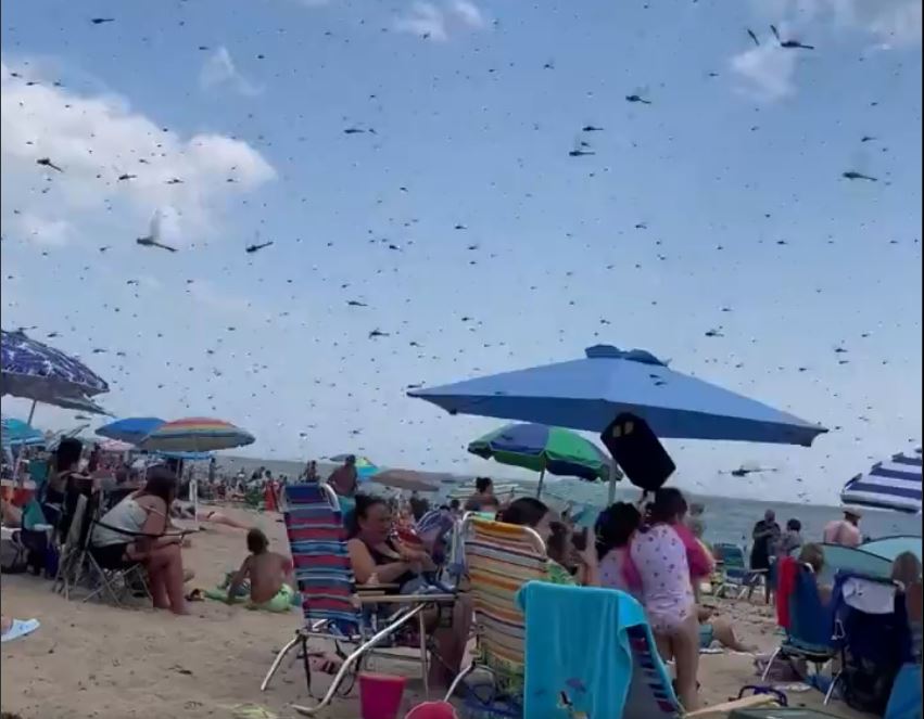 Dragonfly Swarm Surprises Beachgoers At Misquamicut State Beach In US